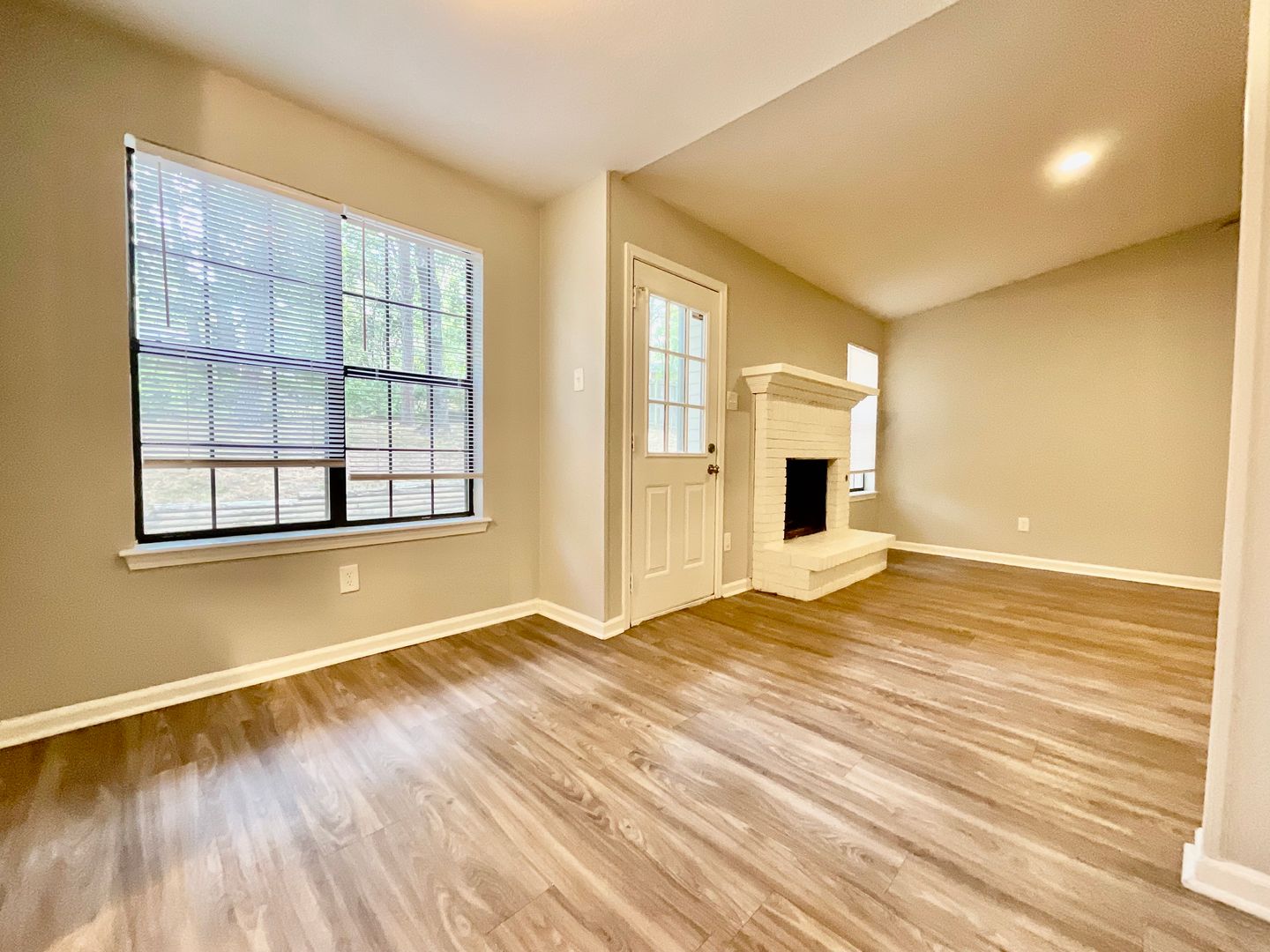 This charming home offers a cozy gas fireplace and vaulted living room ceilings! This home also comes with in unit washer and dryer hookups and central air and heat.