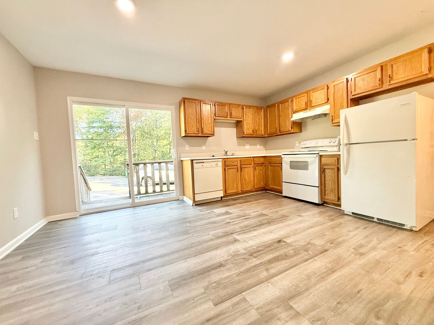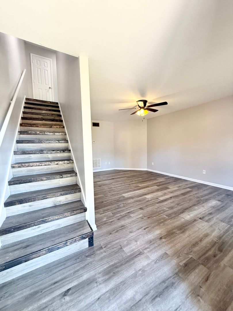 This 2 bedroom 1.5 bathroom unit is spacious and family friendly. This home offers a large living room, half bath, and large kitchen on the first floor. The kitchen comes fully equipped with a stove, refrigerator, dishwasher, and washer and dryer for your convenience! Off the kitchen the sliding doors offer a nicely sized back deck with a wooded area behind leading to a beautiful serene creek. The second floor has two large spacious bedrooms and a large full size bathroom. These rooms offer ample space and comfortability.